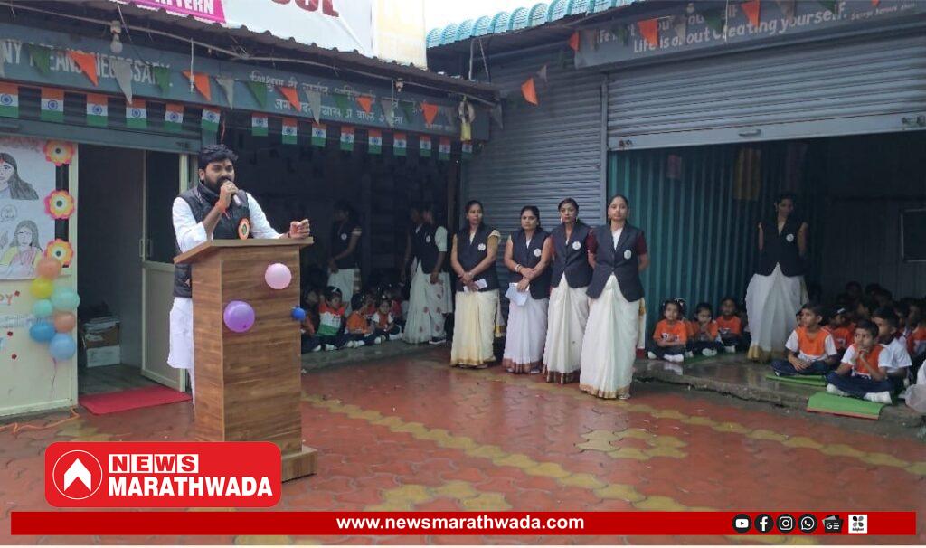 वाळूज महानगर : ज्ञाननप्रबोधिनी इंग्लिश स्कूलमध्ये आज (१५ ऑगस्ट) स्वातंत्र्यदिन मोठ्या उत्साहात साजरा करण्यात आला. प्रमुख पाहुणे म्हणून लाभलेले उद्योजक व सामाजिक चळवळीतील अग्रगण्य व्यक्तिमत्त्व श्री निलेश कुंदे पाटील यांच्या हस्ते ध्वजारोहण करण्यात आले.