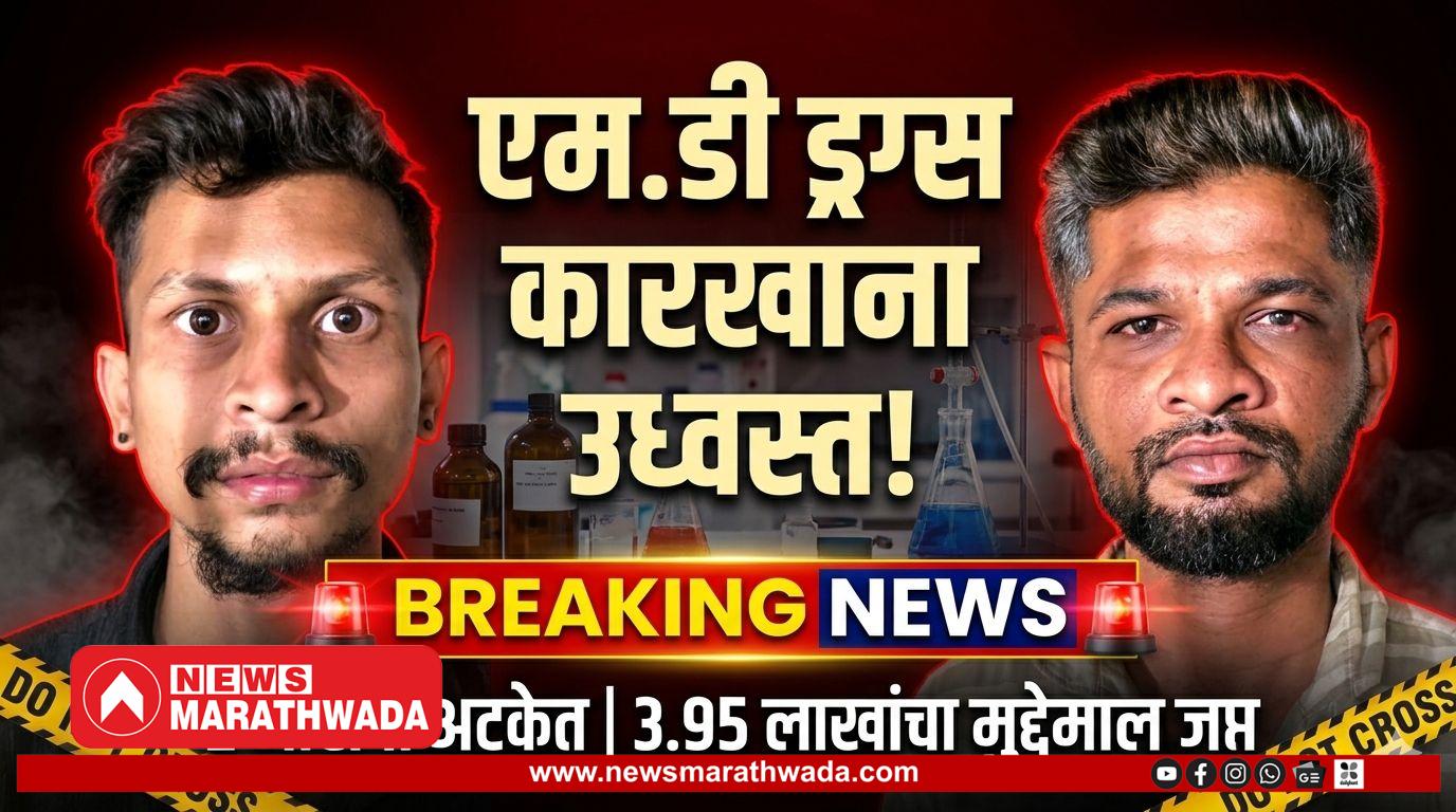 दिनांक 16/03/2026 रोजी प्राप्त गोपनीय माहिती नुसार पोलीस स्टेशन एम. सिडको, छत्रपती संभाजीनगर शहर हद्दीत दोन इसम एम.डी. सारखे अंमली पदार्थ तयार करत असल्याची माहिती मिळताच पोलीस अधिक्षक श्री अजीत टिके यांचे मार्गदर्शनाखाली, पोलीस उप अधिक्षक श्री साईनाथ ठोंबरे यांचे नेतृत्वाखाली पथकातील अधिकारी व अंमलदार यांनी शहानगर मसनतपुर या ठिकाणी असलेल्या पत्र्याच्या शेडमध्ये छापा टाकून किंमत रुपये 3,95,780 किंमतीचा मुद्देमाल ज्यामध्ये एम.डी ड्रग्स 65 ग्रॅम, Distilation process करीता वापरले जाणारे साहित्य राऊंड बॉटम फ्लास्क, कंडेनसर, लेबल काढलेले लिक्वीड केमीकलचे 12 बॉटल्स, सॉलीड केमीकल पावडर 3 छोटे बॉक्स, मिक्सर मशीन, प्लास्टिक ड्रम, कॅन, 3 मोबाईल फोन असा मुद्देमाल आरोपी नामे 1) रोशन रविंद्र कदम वय 32 वर्ष व्यवसाय व्यापार, रा. कोपरी, आनंदनगर, शिवसेना शाखेच्या मागे, ओम कांगुरी मित्र मंडळ, ठाणे इस्ट 2) मयुर दिपक जाधव वय 23 वर्ष व्यवसाय चालक, रा. कोपरी आनंदनगर नवजीवन मित्रमंडळ, ठाणे यांचे ताब्यातुन पंचनाम्याने जप्त करण्यात आला असुन नमुद आरोपी विरुध्द पोलीस ठाणे एम. सिडको येथे गुरन 148/2026 NDPS कायदा कलम 8(C), 21,22(C), 25(A) प्रमाणे गुन्हा दाखल करण्यात आला असून दोन्ही आरोपी अटकेत आहे. यातील आरोपी क्रमांक 01 हा रसायन शास्त्राचे शिक्षण घेतलेले असुन गुन्हयाचा अधिक तपास छत्रपती संभाजीनगर कृती विभाग कार्यालयाकडुन सुरु आहे.