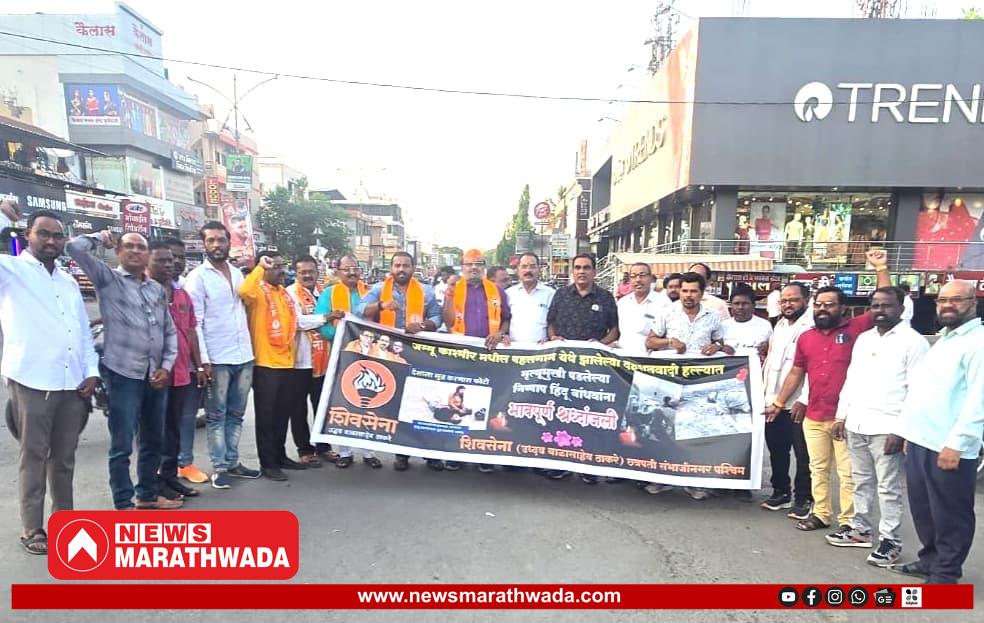 वाळूज महानगर : (दि २३) – शिवसेना ( उद्धव बाळासाहेब ठाकरे ) पक्षाच्या वतीने जम्मू काश्मीर येथील पहलगाम येथे झालेल्या दहशतवादी हल्ल्यात मृत्यूमुखी पडलेल्या निष्पाप हिंदू बांधवाना श्रद्धांजली देण्यात आली तसेच पाकिस्तान विरोधी घोषणाबाजी करत निषेध व्यक्त करण्यात आला याप्रसंगी उपजिल्हाप्रमुख अरविंद धिवर, मा. जिल्हा परिषद सदस्य अनिल चोरडिया, शहर प्रमुख विशाल खंडागळे यांच्या प्रमुख उपस्थिती मध्ये आंदोलनाची सुरुवात झाली.